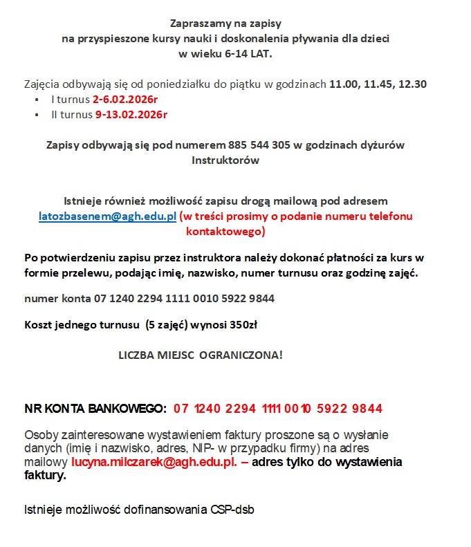 FERIE Z BASENEM AGH! Przyspieszone kursy pływania.